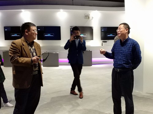 期间,梅教授一行参观考察了上海交通大学虚拟现实VR创新教育实验中心、上海工程技术大学数字媒体体验展示中心、上海曼恒虚拟现实VR交互体验馆,从虚拟现实技术进展到VR教育应用、历史建筑保护、新闻传播、文创产业,以及VR应用实验室的设计组成等多角度、全方位调研了新兴的虚拟现实技术对教育未来发展的变革力量和促进作用。