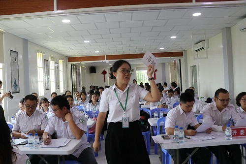 来自柬埔寨孔子学院本部、暹粒吴哥高中孔子课堂、西港高中汉语中心、陆军学院汉语中心、金边文化中心汉语中心、棉芷大学中文系、亚欧大学中文系、韩桑林大学汉语中心共10名教师参赛。在竞赛中,参赛选手们灵活运用多种教学方法,通过简单通俗的讲解、生动有趣的游戏、直观的教具等充分展现了各自的教学风采与教学能力。比赛中,亚欧大学志愿者教师何慧敏老师精心准备的形象教具、棉芷大学中文系志愿者教师王涛老师认真准备的教案和完整的教学环节、陆军学院汉语中学的志愿者教师程东老师所采用的流利柬语辅助教学等,赢得了评委们与教师们的一致好评。