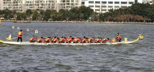 龙舟队是我校的传统特色运动队,学校领导以及学院领导都给予很大的支持与帮助,不断改善训练条件和训练待遇,为龙舟队的训练、比赛提供良好的后勤保障。在教练员周海浪、王向棋的带领下,队员们坚持全年训练,特别是水上训练,他们克服高温、雨水天气,坚持每天下水训练,动感的鼓声、整齐的划桨、激情的呐喊,已经成为南门湖上一道美丽的风景线。
