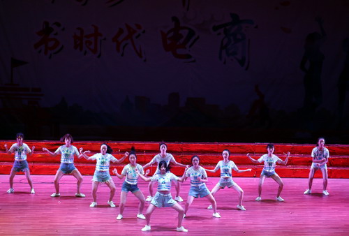 晚会在教职工子女欢快乐、热闹的开场舞中拉开帷幕。随后,由合唱队带来的歌曲《唱支山歌给党听》表达了新时代的新青年们对十九大胜利召开的祝贺,对伟大中国共产党的祝福,也预示了他们愿意为建设中国梦努力的决心;啦啦操《BangBang》向大家展示了电商学子的青春活力;李志勇老师和高燕燕老师合唱的《你最珍贵》,歌声婉转动人,扣人心弦,展现了电商教师多才多艺的一面;古典舞《凉凉》则把大家带回到了那十里灼灼桃林;2017级助导带来的精彩秀以及舞蹈让大家看到了不一样的助导;小品《校园交响曲》,则在幽默诙谐中引导大家在大学追求自由、进取的生活;民谣弹唱《愿爱无忧》在淡淡的潜吟清唱中让大家品味了民谣的魅力。