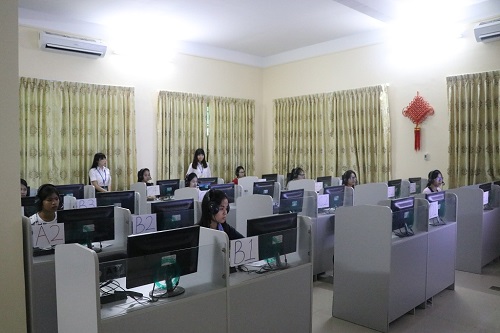12月3日,柬埔寨王家研究院孔子学院在电子语音室举行了2017年第二次汉语水平口语考试(HSKK)。此次考试分为HSKK初级、HSKK中级、HSKK高级,来自孔子学院韩桑林、马德望、大岛、茶胶、棉芷、西哈努克以及金边等教学点共126名学生报名参加了此次考试。