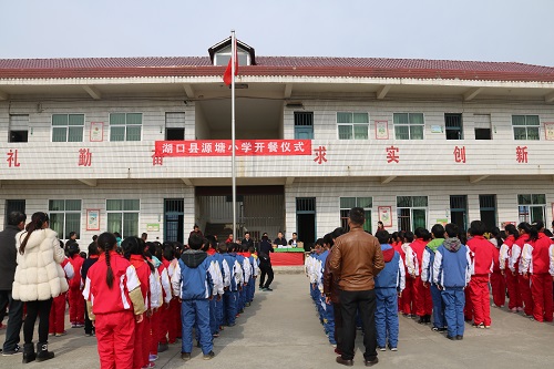 开餐仪式上,源塘小学胡校长介绍了源塘小学基本情况,并代表源塘小学对参与此次爱心活动的社会人士和志愿者表示热烈欢迎和衷心感谢。邱玉林部长在仪式上发表了热情洋溢的讲话,他衷心祝愿学校的孩子们在“免费午餐”的帮助下吃得开心,健康成长。蔡飞主任作为我校爱心人士代表发言,表示很高兴参与此次爱心公益活动,希望九江学院师生的绵薄爱心能激励孩子们好好学习、茁壮成长。