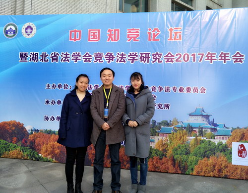12月9日至10日,由中国法学会经济法学研究会竞争法专业委员会、湖北省法学会竞争法学研究会主办,武汉大学知识产权与竞争法研究所、武汉大学法学院承办以及南粤专利商标事务所协办的首届“中国知竞论坛”暨湖北省法学会竞争法学研究会2017年年会在武汉大学法学院120报告厅盛大召开。政法学院知识产权教研室副主任刘闻博士及A1731班郭苗苗、钟佩瑶同学应邀参加了会议。
