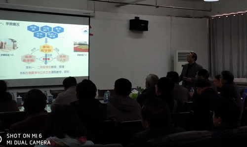 基础医学院院长车向新教授从定位与目标、师资队伍、教学资源、培养过程、学生发展、质量保障、特色项目等七个方面全面汇报了基础医学院本科教学自评自建工作。随后,督查评估专家组成员在相关工作人员带领下走访了虚拟实验室、解剖实验室等实验室,并集中抽查了各专业部分班级的试卷、实验报告、教学大纲、教研室活动记录本等教学资料。
