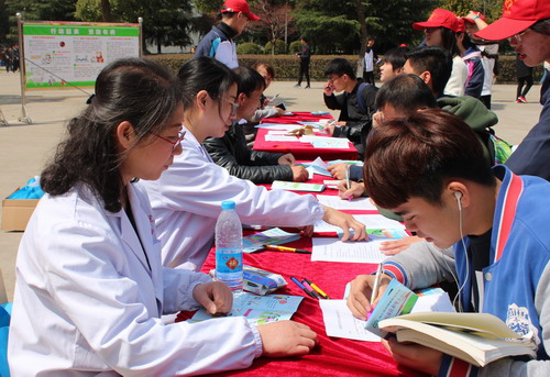 3月22日和23日中午,校医院联合九江市疾控中心、九江市结防所、濂溪区疾控中心,组织医护人员以及唯医服务队员分浔东校区、主校区在户外进行结核病防治宣传咨询活动,通过摆放宣传展板、设立咨询台、发放宣传册、结核病小读本、调查问卷等多种形式向过往学生宣传结核病相关的预防知识,活动现场,“开展终结结核行动,共建共享健康中国”主题宣传标语引人注目,多张结核病防治知识展板吸引了许多大学生驻足观看,同学们参与热情很高,校医院的医护人员也耐心向前来咨询的学生讲解了预防结核病的知识与国家防治政策。