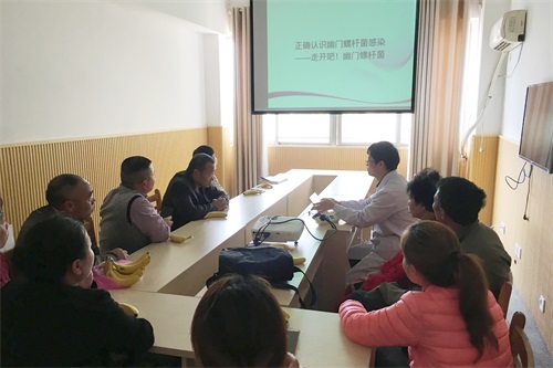 方主任主要讲述了幽门螺杆菌的生长环境、传播途径、预防方式等基本知识。方主任介绍到,幽门螺杆菌是一种微需氧菌,其稳定生长需依靠在生长的微环境中含5%-8%的氧气,在大气和绝对厌氧的环境中均不能生长。在自然环境中,目前认为人是唯一的传播源。主要的传播方式有口-口传播、粪-口传播、胃-口传播等。这些传播方式与我们的生活习惯关系密切,希望患者及家属正确认识幽门螺杆菌感染疾病的基本知识,树立科学合理的健康生活方式,通过治疗,重返健康。讲座受到了患者及家属的一致好评,纷纷表示进一步了解了疾病的预防及治疗知识,修正了日常生活中的一些错误观念,受益匪浅。