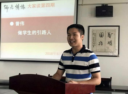 大家下午好!师者情怀已经成功举办了三期。第三期的舒彤老师从一个大学生家长的角度,谈了对大学教师在教书育人方面的祈盼。引发了我对自己作为学生班主任的反思:自己有没有做好班主任,是不是一个让家长放心的班主任?当学生完成四年学业,走出大学校门的时候,我能否给他们的家长递交一份满意的答卷。想到这些我感觉自己责任重大。