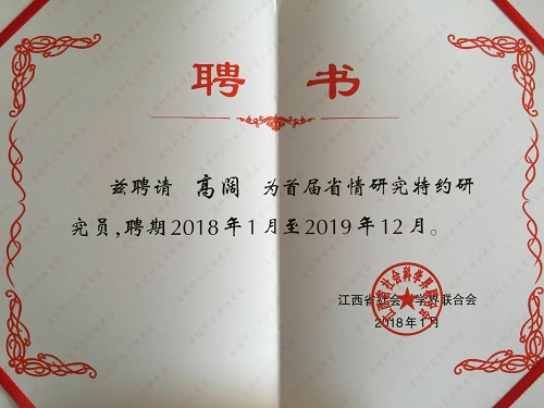 我校两名教师被聘请为江西省首届省情研究特约研究员