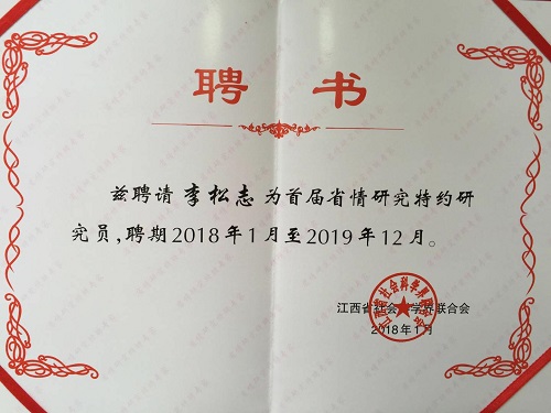 江西省首届省情研究共聘请了100位特约研究员,旅游与国土资源学院李松志教授、经济与管理学院高阔教授成功当选。