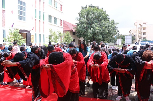 暹粒吴哥高中孔子课堂展示汉服礼仪