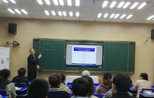 11月11日上午,两位教授在文友楼223分别作了题为“Limit cycles for discontinuous planar piecewise linear differential systems separated by a curve”和“Turning point theory of singularly perturbed systems and its application”的学术报告。学术报告由理学院副院长查代奉教授主持,理学院部分教师和数学与应用数学专业学生聆听了讲座。