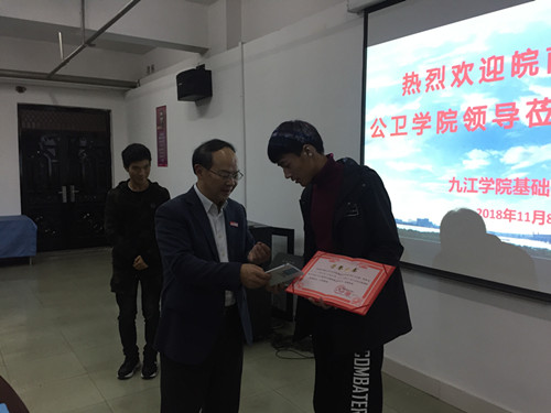 会上,车向新院长对皖南医学院公卫学院各位师生的到来表示热烈的欢迎,并向客人介绍了基础医学院的概况以及在师资队伍、人才培养、教学科研等方面取得的成绩,向皖南医学院对基础医学院预防医学交流生的热情接待和学习生活上的关照表示感谢。