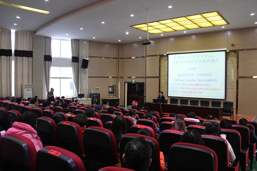 为推进学院科研工作建设,加大学科建设力度,南京师范大学王永祥教授、博导应邀于12月13日下午到外国语学院做了题为《从教师中心到学生中心,再到主体间性外语教学模式》的学术报告,外国语学院全体教师参加,报告会由副院长周志高主持。