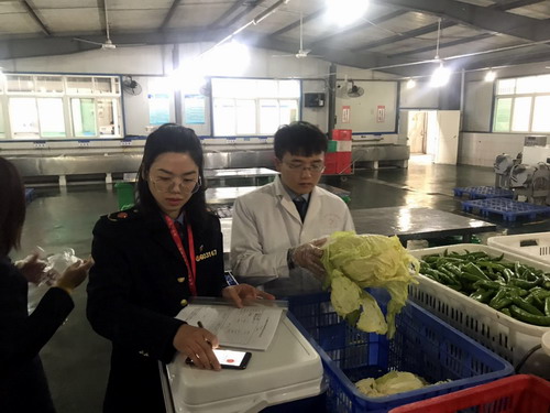 活动现场,检测人员从九江学院学生食堂取样部分品种的蔬菜作为检测标的。据检测人员介绍,食品安全快速检测设备可对食品农药残留、二氧化硫、亚硝酸盐、吊白块、过氧化值等20多项食品指标进行检测,且准确度高,操作简便。食品安全快速检测设备的投用,告别了以往食品安全执法检查用手摸、凭肉眼、靠经验的做法,提高了食品安全监管的靶向性和针对性。食品是否安全,通过实验室检测周期太长,不能让消费者及时掌握不合格食品信息。而食品安全快速检测仪正好弥补了实验室检测周期长的不足。经过抽样检测,九江学院参检样品全部合格。市场监督局工作人员和众多媒体还一起走进九院食堂后厨,检查食堂各项记录,参观了我校食堂的仓储中心和蔬菜配送中心,对我校饮食服务中心心系师生饮食安全的一系列做法表示赞赏并提出了很多好的建议。