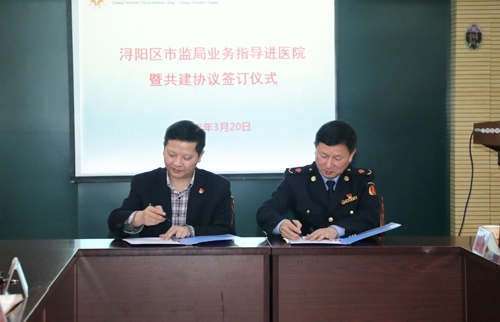 随后,为进一步营造安全可靠的公共医疗环境,提高为民服务质量,实现医疗服务资源的合理优化配置,双方还本着互利合作的原则,对合作共建活动达成共识。浔阳区市场监督管理局龚雪华书记、临床医学院/附属医院张南华书记在会上共同签署了合作共建协议。