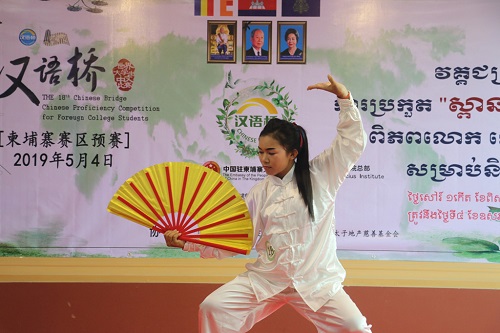 “汉语为桥,天下一家”。2019年5月4日下午,第十八届“汉语桥”世界大学生中文比赛柬埔寨赛区预赛于柬埔寨皇家科学院孔子学院三楼多功能厅举行。此次大赛由中国驻柬埔寨大使馆和孔子学院总部/国家汉办主办,柬埔寨皇家科学院孔子学院承办,柬埔寨福建总商会、太子地产慈善基金会共同协办。