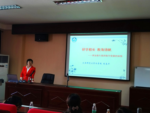 为进一步加强青年教师队伍建设,对标国青教赛水准来提升我校教师竞赛水平,5月22日下午第四届全国高校青年教师教学竞赛文科组三等奖、第三届江西省高校青年教师教学竞赛文科组一等奖第一名获得者,江西师范大学陈志华博士莅临学校第十六期名师论坛开展赛前辅导活动,学校90余名中青年教师参加,活动由教师教学发展中心常务副主任漆晗东主持。