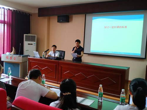 活动中,桂老师围绕报告主题“一堂好课的标准”,分析了“开好头”“结好尾”“把握住节奏”“呈现好内容”是一堂好课应具备的几个要素,并通过教学案例详细阐述了如何运用与学科相关的故事、电影桥段、生活中的事例等不同方式进行课程导入,将“抛出问题——让学生带着问题去听课——通过学习解决问题”这一教学策略贯穿教学始终,让学生以饱满的热情和积极的心态投入课堂学习,同时强调了教学中“留有余味的好结尾”、课后培养学生主动探究知识的重要性。