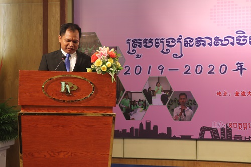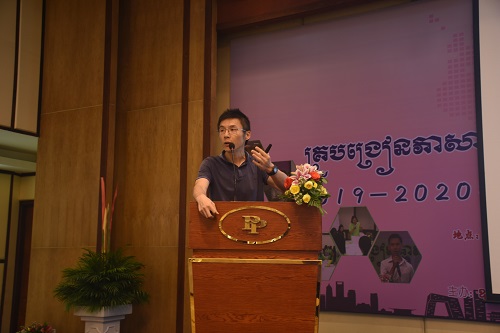11日上午,2019-2020年度赴柬汉语教师志愿者岗中培训在柬埔寨金边大酒店顺利开幕。柬埔寨皇家科学院秘书长杨博(YANG Peou)博士、孔子学院总部/国家汉办项目官员来永梅女士、柬埔寨柬华理事总会常务副会长兼文教处长郑棉发勋爵、柬埔寨柬华理事总会常务副会长兼文教副处长蔡伟华先生、柬埔寨柬华理事总会常务理事陈中盛先生、吴朝文先生、孙宝儿先生、曾广荣先生、柬埔寨柬华理事总会常务秘书钟耀辉先生、柬埔寨皇家科学院孔子学院柬方院长苏碧娜女士(VUTH Sopheakna)、中方院长柴克清先生、首都师范大学国教学院林秀琴副院长、柬埔寨皇家大学DHY汉语中心主任周丽云先生、志愿者管理教师田金金女士、李玉立先生等领导莅临本次开幕式。苏碧娜院长、郑棉发勋爵以及来永梅女士致辞,希望志愿者们“展现青春风采,让‘汉语之花’在柬埔寨继续美丽绽放”。全柬253名汉语教师志愿者和16名公派教师参加了本次开幕式。
