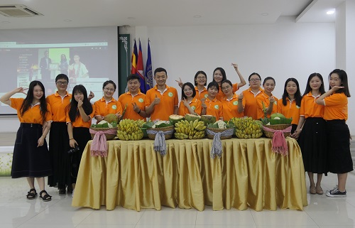 2019年11月9日下午三点,亚欧大学在金色大楼13楼会议室举办了2019年送水节庆祝活动。参加本次会议的有亚欧大学董事长梁冬先生(Dr.DUONG Leang)、校长谢索皮先生(Dr.CHEA Sopheap)、副校长孙索特先生(Dr.SUN Setha)、苏宝松先生(Dr.SUOR Bunsou)等校领导,以及特邀嘉宾、行政、教务等部门负责人和各二级学院院长,教职工代表等共约70人。亚欧大学中文系负责人甘敏老师带领6位公派教师和10位汉语教师志愿者应邀参加了此次活动。活动历时两个小时,充满了欢乐的气氛。