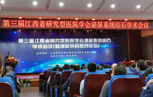 本次会议共有全省各地泌尿外科同仁300余人参加。会议由江西省研究型医院学会泌尿系统结石会主任委员匡仁锐教授主持,国内知名医院专家上海交通大学医学院附属第九人民医院泌尿外科主任王忠教授、中山大学孙逸仙纪念医院江春教授、清华大学附属长庚医院泌尿外科肖博教授、上海仁济医院泌尿系结石诊疗中心主任夏磊教授等出席。我院泌尿外科黄鹏主任应邀参会并担任“输尿管软镜碎石”专题主持人,黄鹏主任在主持中的专业点评赢得了会场的热烈掌声,体现了临床医学院/附属医院泌尿外科较高的学科服务能力水平和在省内重要学术地位。