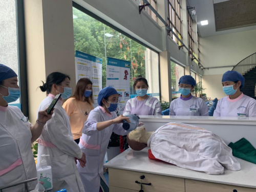 大家的学习热情都很高,主动选择了下班时间进行培训,做到了全员参加,人人过关。培训由护理部主任徐胜主持,护士长陈孚具体指导。培训师都是从各诊疗组高年资主管护师中层层选拔出来的,具有丰富临床护理工作经验和良好操作技能水平的操作精英。