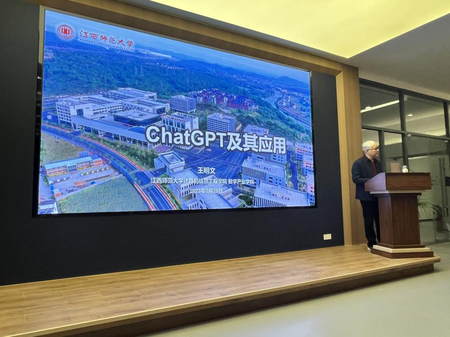 2月25日,由我校大学科技园、计算机与大数据科学学院联合举办的第二十四期白鹿创客沙龙在大学科技园一楼研讨室举行。本期活动主题为“ChatGPT及其应用”,由江西师范大学数字产业学院院长、耶鲁大学访问学者王明文教授主讲。