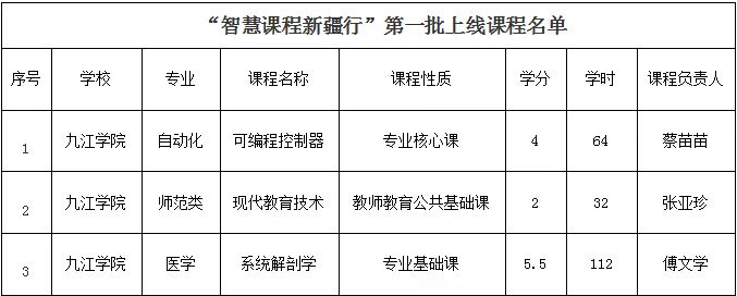 近日,新疆高校在线教育联盟发布了《关于公布第一批“智慧课程新疆行”精品智慧课程遴选上线新疆高校在线教育联盟平台结果的通知》,我校推送的《可编程控制器》《现代教育技术》《系统解剖学》三门线上课程成功入选第一批“智慧课程新疆行”项目,正式上线新疆高校在线教育联盟平台。
