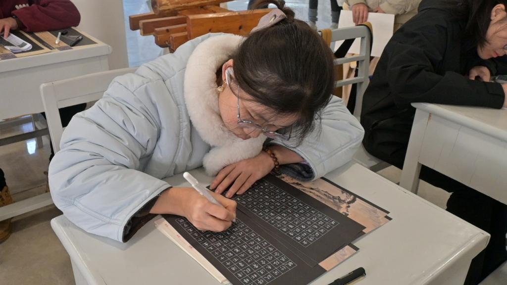 12月6日上午,紫薇园校区5号学生公寓的“一站式”示范性学生社区中,“翰墨承新·笔绘2025”书法创作活动与“甲辰掠影·2025的闪光瞬间”摄影展示活动同步拉开帷幕。在书法创作区,近百名同学分为毛笔与硬笔两组,以笔墨为媒介,尽情抒发对2025年的美好憧憬。他们或挥毫泼墨,书写豪迈壮志;或工整书写,传递细腻情感,现场墨香四溢。与此同时,摄影展示区展出的60余幅作品也吸引了众多师生的目光。每张照片都配有真挚的文字说明,生动讲述着九院人的温暖故事,引得大家驻足欣赏、细细品味。