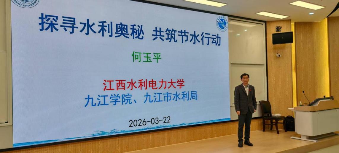 近年来,九江学院作为九江首个节水型高校,始终重视水资源节约与水文化教育。此次讲座紧扣2026年世界水日“Water and Gender”和中国水周“国家水网 世纪画卷”主题,将节水宣传与科普教育深度融合,让节水理念真正入脑入心,推动形成人人节水、护水、爱水的良好校园氛围。